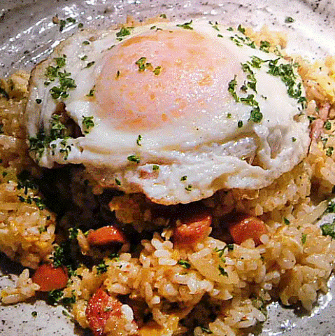 チャーハンのようなライスに目玉焼きやガーリック、ソーセージなどが入ったメニューです。※表示されているコースは、現在予約を受け付けていない場合があります。