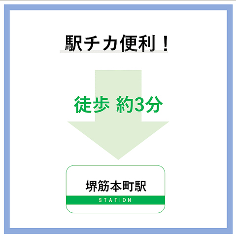 地下鉄 堺筋本町駅 1番北口から徒歩1分の駅近のお店♪会社宴会におすすめ★