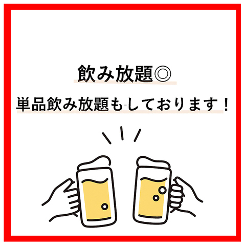 飲み放題利用◎ コースはもちろん、単品利用も可◎