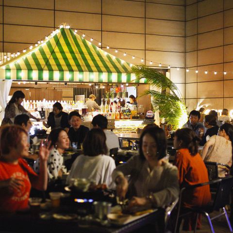 夏場の夜はビアガーデンなどもでき、仲間でワイワイするなら最適。