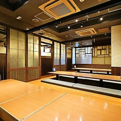 大人数での宴会に最適な居酒屋として、広々としたテーブル席をご用意。飲み放題付きコースも充実しており、個室の利用も可能です。設備や環境が整っているので、幹事様が安心してご予約いただけます。