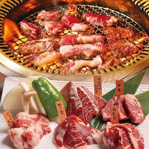 ほんまに旨いが「ここ」にある!オススメの「厚切り牛タン」をはじめとして、定番の「カルビ」や「ハラミ」「ロース」はもちろん、「ホルモン」や「豚」「鶏」など、美味しいお肉を豊富にご用意☆お肉の他にも、【焼き物】や【サラダ】【逸品】【ご飯】【デザート】等のメニューも充実しております♪