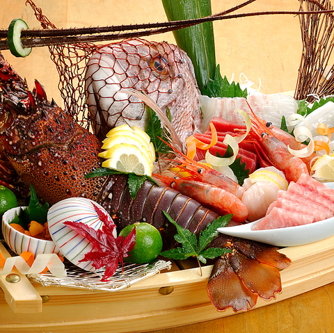 新鮮な海の幸を、信頼のある業者から仕入れご提供。冬はブリ、フグ、カニ、夏はアナゴ、ハモなど、季節によって変わる旬の魚介をお造り、焼き魚、天麩羅など多彩な調理法でお楽しみいただけます。人気の「吉在門極上特選造り盛り合わせ」は、厳選した8種類のネタを1人前~ご用意。
