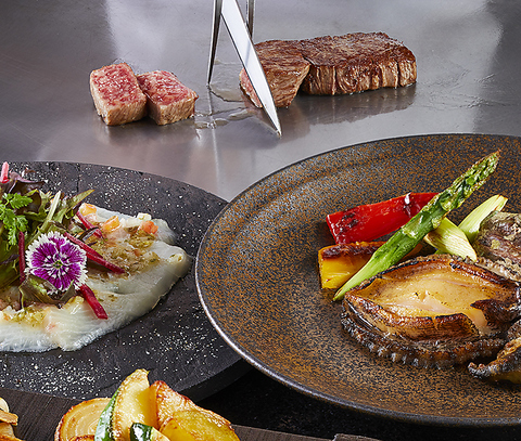 料理人が目の前で焼く鉄板焼はどれも逸品揃いです。優雅なお時間をお過ごし下さい。