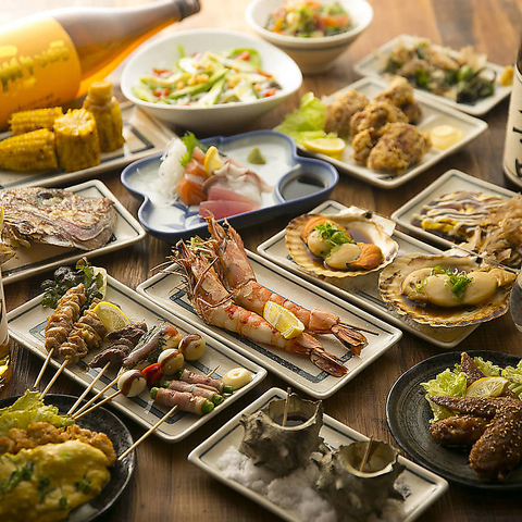 力丸グループ名物!!炉端焼きを思う存分食べ飲み放題で・・・・☆選べる料理は、70種以上!!梅田駅の茶屋町口からすぐの立地で集合も楽々!!