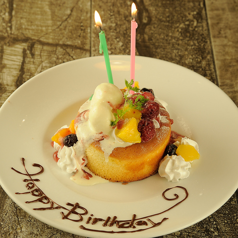 お誕生日や各種お祝いに!前日までのご予約で1000円相当のメッセージ付きデザートプレートサービス!