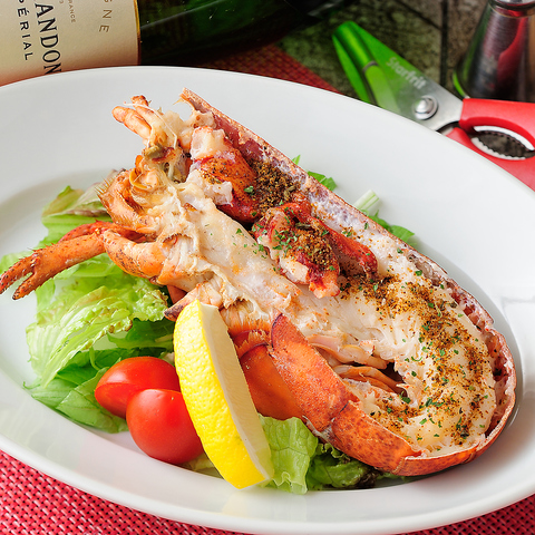 「オマール海老のケイジャンスパイス焼き(ハーフ)」は、1~2名様におすすめのメニューです。ケイジャンスパイスの香ばしい風味と、プリプリのオマール海老の旨味をお楽しみいただけます。