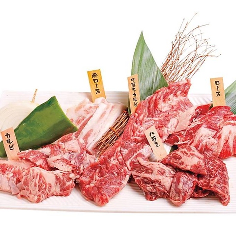 贅沢な黒毛和牛を、盛り合わせで!厳選和牛4種盛りでは様々な部位をお楽しみいただけます。単品でも取り揃えておりますのでメニューからお好きな部位をお選びください♪食べ放題コースはプレミアムコースで楽しめます♪記念日・デートの大切な日に少しの贅沢をしませんか?