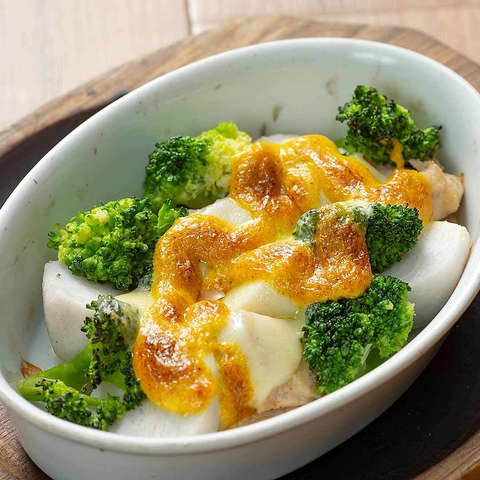 冷たいかぼちゃサラダの上でチーズがとろけます