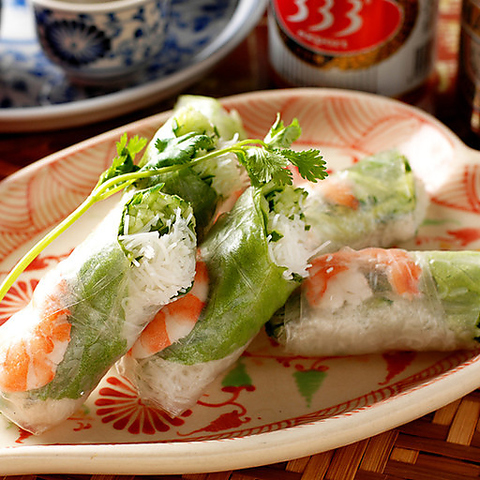 『えび入り生春巻』は当店不動のナンバー1です!!その他にも新鮮な魚介・たっぷり野菜・香草・バリエーション豊かなお米料理や素材を活かした調理法…本格ながら、美味しくヘルシーなベトナム料理をお楽しみ下さい♪