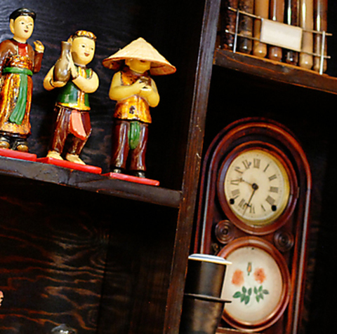 ゆったりと寛げるテーブル席が充実◎そこかしこに置かれたインテリア達が、“ベトナム”らしい雰囲気を演出しています。落ち着いた照明、調度類、シックな内装により、店内はより異国情緒漂う空間に。しっとりとしたムーディな店の中は、デートや女子会にもピッタリな雰囲気です。