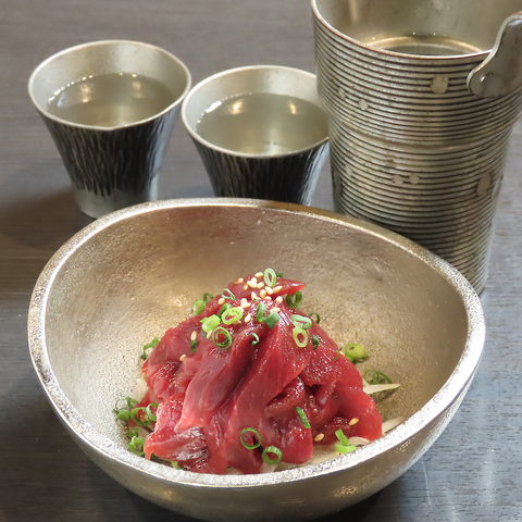当店人気の地鶏のたたき。海鮮以外のメニューもご好評♪