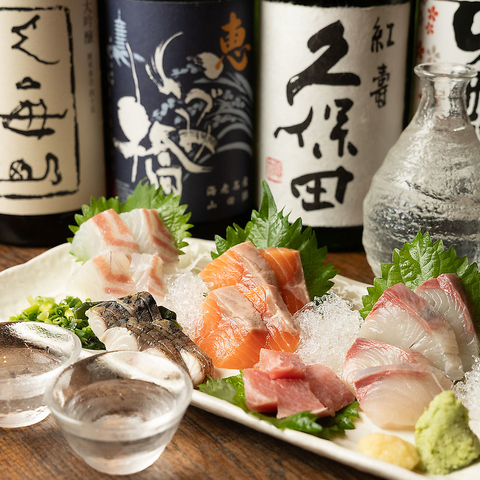 <豊富な地酒でペアリング>鮮魚の刺身盛合せ、牛タン、馬刺しなど当店自慢の一品に合う多種のお酒をご用意。味のある店内空間と一緒にご堪能あれ♪