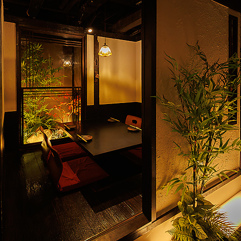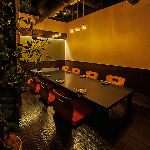掘りごたつタイプのお席は足をおろしてゆったりおくつろぎ頂けます♪様々な個室をご用意しておりますので、人数に合わせたお席にご案内いたします!会社飲み会や2次会、お友達同士、ご家族でのご利用にもおすすめ◎古民家風の造りはまどろみの時間を演出。自慢の創作料理で最高の時間をお過ごしください♪