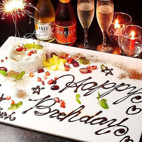 大切なあの人の…誕生日、記念日など、サプライズのお手伝い致します。ホールケーキで喜ばせよう♪当店の個室で思い出に残るご宴席を♪ケーキの持ち込みも、もちろんOKです♪わんの雰囲気自慢完全個室で楽しいひとときをお過ごしくださいませ。飲み放題付きコースなどと併せてご利用くださいませ。