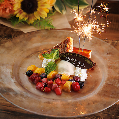 大切なあの人の…誕生日、記念日など、サプライズのお手伝い致します。ホールケーキで喜ばせよう♪当店の個室で思い出に残るご宴席を♪ケーキの持ち込みも、もちろんOKです♪わんの雰囲気自慢完全個室で楽しいひとときをお過ごしくださいませ。飲み放題付きコースなどと併せてご利用くださいませ。