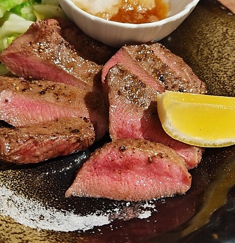 厚切り牛タン炭炙り焼きをトリュフ塩で贅沢に仕上げました・「名古屋駅 牛タン もつ鍋 名駅 単品飲み放題 カップルシート 名古屋 居酒屋 日本酒 喫煙可能席 貸切 串カツ 手羽先 2次会 貸し切り 宴会 二次会 3時間飲み放題 完全個室 3時間 個室あり 馬刺し 馬刺 馬肉 焼き鳥 焼鳥 牛たん」
