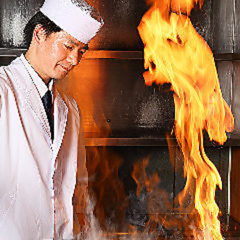 素材の美味しさを最大限に引き出す鉄板料理。職人の経験と知識・感覚で常に最高の料理に。目の前で繰り広げられる鉄板パフォーマンスも当店の魅力の一つ!豪快に上がる炎の中、熟練の技を駆使して仕上げます。シンプルだからこそ分かる違い!それが龍神のこだわりです。