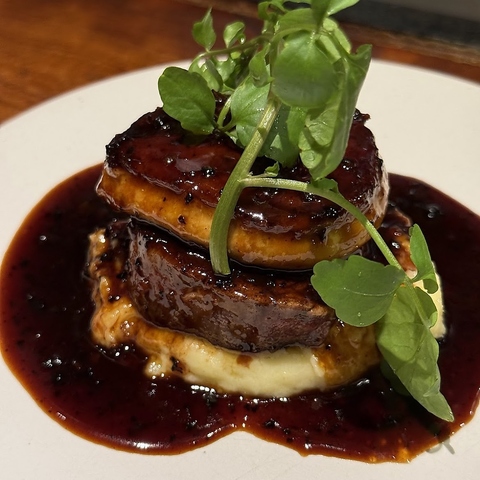 肉質柔らかな牛ヒレ肉、表面カリッと焼き上げてたフォアグラに自家製トリュフソースが相性マッチ!下引きにした自家製マッシュポテトが名脇役!フォアグラ好きなら是非ご賞味ください。