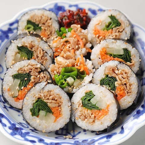 牛肉や野菜の具材とお米にこだわりの味付けをした手巻きキンパ。数量限定!