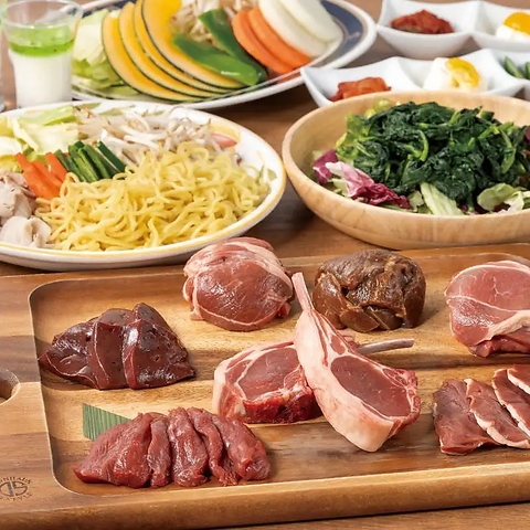 クオリティを追求したお食事コースは100分飲み放題付き♪『ラムづくしセット』は、ラム肉7種を味わえる、厳選ラム肉を堪能するコース。前菜、サラダ、〆もセットでビール園の味を満喫できるお食事コースです。〆の人気のビール園焼きそば☆