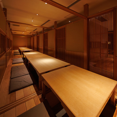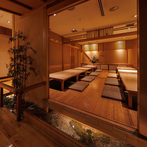 当店は枯山水をイメージした落ち着いたお店です。川崎駅北口東から徒歩30秒!純和風の個室が充実♪全てのお席が掘りごたつの個室、全34室ございます。会社宴会、納会、歓迎会や送別会、オフ会、女子会、ご家族で、誕生日会、ご法要など、様々なシーンにてご利用頂いております。お気に入りの個室は御予約時にご指定可能となっております。