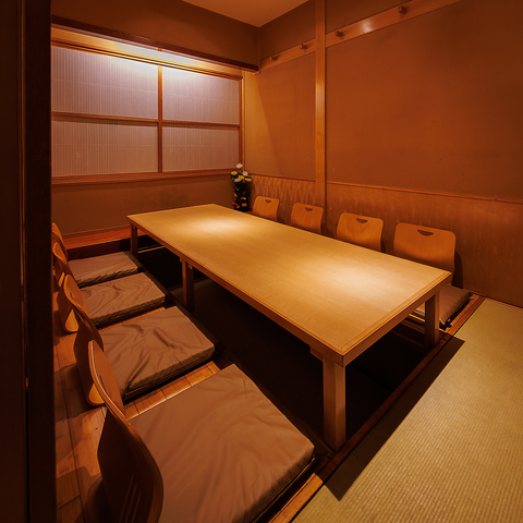 全席掘りごたつの完全個室となっており、2名様から最大40名様まで対応した個室を完備しております。和情緒溢れる空間はプライベートをお守りした特別な空間でこだわりの新鮮な本マグロと、高級比内地鶏を贅沢に楽しめる2時間飲み放題付きコースをお愉しみ下さい。各種ご宴会にぴったりなお席をご案内致します。ご予算やご要望ご相談下さい。