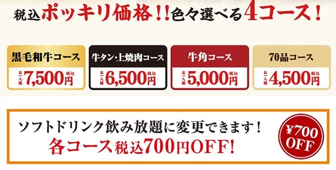 | 食べ放題 | あり :食べ放題コース全4種類ご用意しております! |