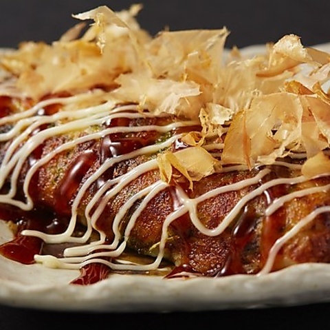 《元祖粉もん これぞ大阪》おかわり続出中!!名物のひとつ◎大阪のお好み焼きとたこ焼きのいい所取りをしたメニュー☆大阪名物が2つも一度に食べられる贅沢な逸品です♪ふんわりとした食感とソースとマヨネーズ、そして上に乗ったかつお節の香りがたまらず、何度でも食べたくなる味です◎おつまみとしての相性も抜群です♪