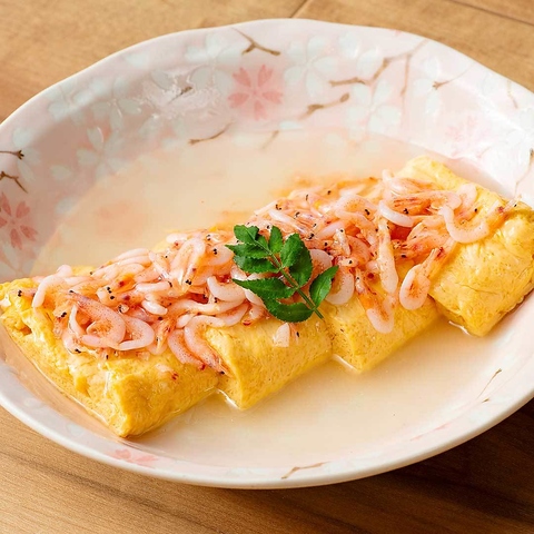 海鮮居酒屋のだし巻!旬の桜海老あんたっぷりの期間限定です!日本酒に合うイカマヨも絶品♪