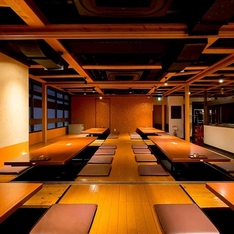 【3F堀ごたつ個室】足元らくちんな堀ごたつの個室は、10名・18名・30名・40名・50名に仕切れます。人数に応じてご相談ください