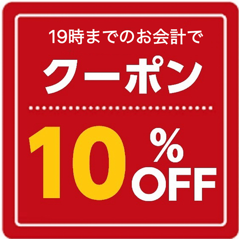 【早割】16時~19時迄のお会計で!10%オフ ※19時以降は5%オフ(コースと併用できません)