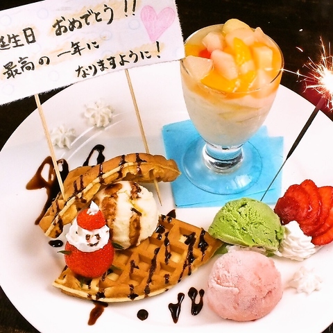 【誕生日・記念日】予約時に申請でメッセージ入りデザートプレートサービス♪誕生日記念日はもちろん、女子会や歓送迎会など会社宴会でのお祝いにも是非ご利用下さい!