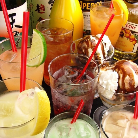 | カクテル | 梅酒(ロック/サワー)/ファジーネーブル/ピーチウーロン/カシスオレンジ/カシスウーロン/カシスソーダ |