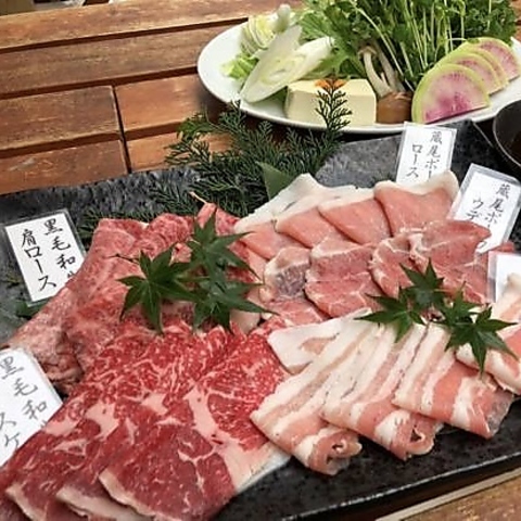 厳選した黒毛和牛と国産豚のしゃぶしゃぶが自慢。3日ほど熟成させる、自家製の「熟成生ごまだれ」は絶品です!種類豊富な定番だしや、季節限定だしとの組み合わせをお楽しみください。