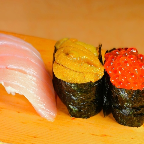 【贅沢握り3カン!!】厚切りの大トロ・生うに・イクラをこぼれる程乗せちゃいました♪
