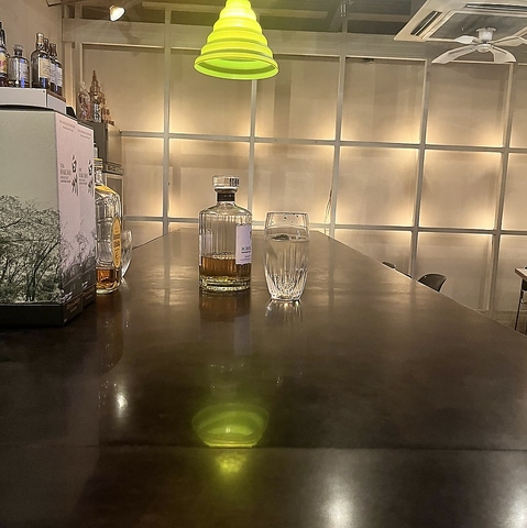 カウンター席の前には様々なお酒がずらりと並んでいます。カクテルは全て果実の生搾りなので、女性の方に人気です♪