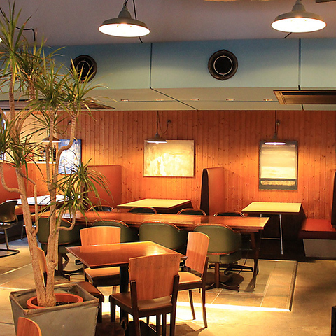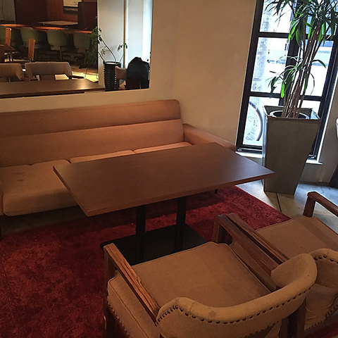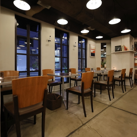 NY、ダウンタウンのレストランをイメージした落ち着いた雰囲気のある店内。カップルやご家族のご利用にオススメのベンチシートは心地の良いひと時を演出します。大切な方への記念日や誕生日にもお勧めです。ランチもカフェもOKの使い勝手がよいお店です。シックでお洒落な店内が落ちつきを醸成します。