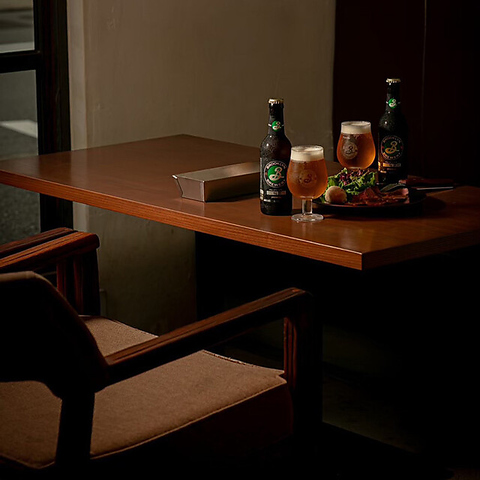 2名様掛けの窓際席は、特別なひとときを過ごすのにぴったりです。窓から差し込む光を感じながら、日常の喧騒から離れて心ゆくまでお酒をお楽しみいただけます。カップルでの語らいや、大切な友人との穏やかな時間、あるいは一人でゆっくりと過ごしたい夜にも最適です。