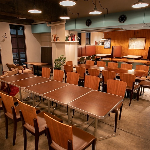 4名掛けのテーブル席は、レイアウト変更が可能です。貸切利用の際は、人数や用途に合わせてお席の配置を柔軟に調整いたします。