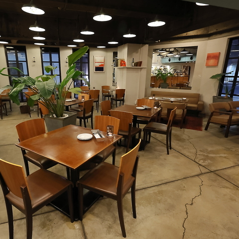 NY、ダウンタウンのレストランをイメージした落ち着いた雰囲気のある店内。カップルやご家族のご利用にオススメのベンチシートは心地の良いひと時を演出します。大切な方への記念日や誕生日にもお勧めです。ランチもカフェもOKの使い勝手がよいお店です。シックでお洒落な店内が落ちつきを醸成します。