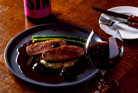 自慢の肉料理には赤ワインを合わせ楽しめます。