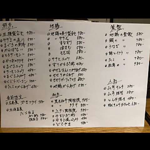 | 料金備考 | 付出し300円 (小鉢と野菜スティック) |