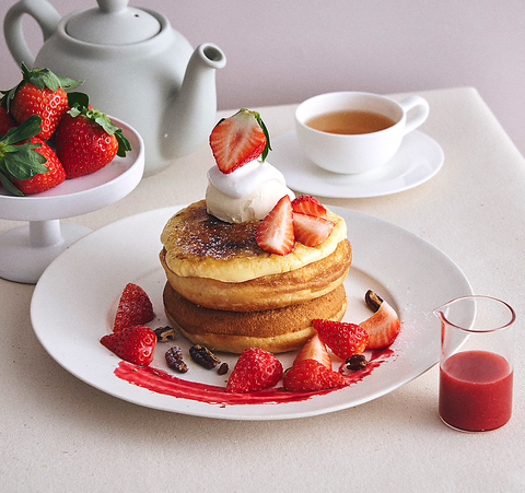 “あすかルビー”いちごと焦がしブリュレのパンケーキいちごソース