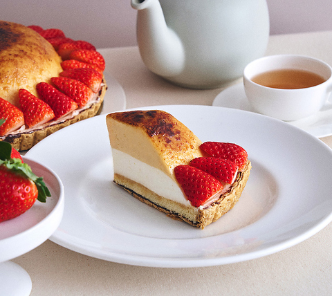 カリとろブリュレに、とけ合うおいも。あまい記憶は、蜜芋と一緒に焦がして。ほっくり甘い“蜜芋”をなめらかなブリュレに仕立て、表面は香ばしくキャラメリゼ。中には、黒糖を隠し味に加えたコク深いホワイトムースを重ねて。
