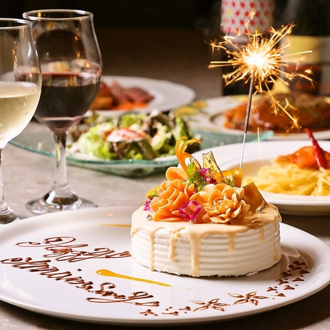 誕生日会などにはケーキをご用意可能♪2~3人分は2500円!/4~5人分3000円!※3日前までの要予約。 また、メッセージプレートや花束の手配など思い出に残る最高の1日をお手伝い致します。【Anniversary5大特典】メッセージ付プレート/プレゼントお預かりOK/お食事代先払いOK/※チェキで記念撮影と花束の手配は現在、受付停止中※