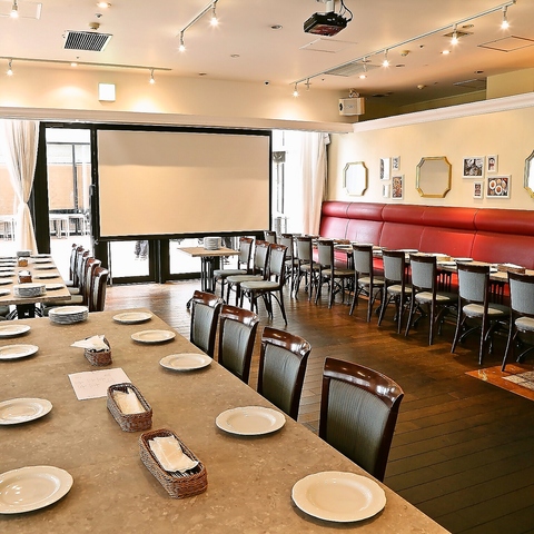 団体様大歓迎!貸切も可能!店内は着席で55名様まで、立食は80名様までご利用可能です。120インチのスクリーンや音響設備も完備しています。詳細はお気軽にお問い合わせ下さい。