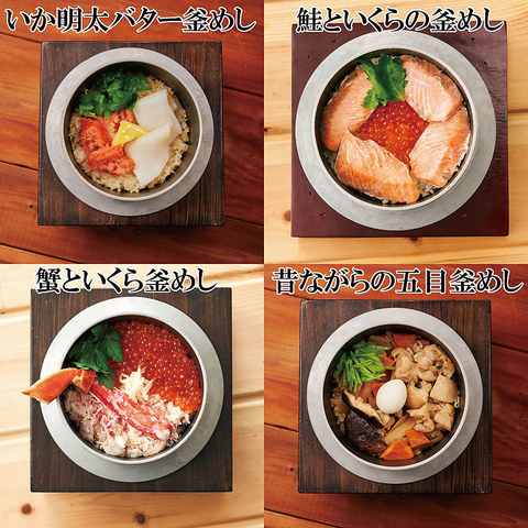 かまどかと言えば、釜めしです!丁寧にひと釜ひと釜を炊き上げた美味さが引き立つ一品★全4種類の釜めしと、季節限定釜めしもあり、飽きさせない釜めしとなっております!