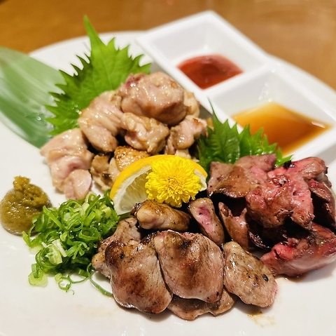 朝引き3種盛り合わせ980円!当店の1番人気メニューです◎新鮮なモモ、レバー、ハツをご提供いたします!