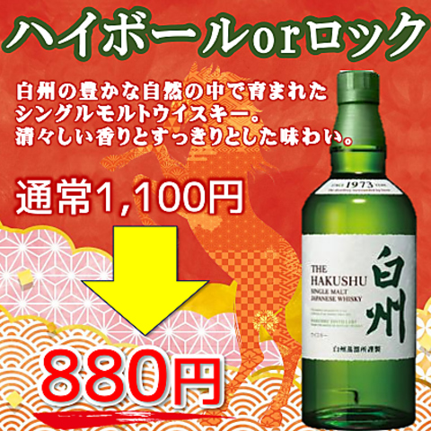 上海モダン新年の感謝キャンペーン!サントリーの白州のハイボールorロックが通常1,100円→880円に!